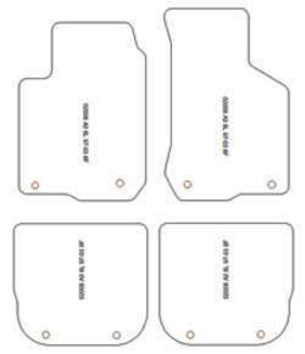 | Zusammensetzung des Sets | 2 Fussmatten vorn 2 Fussmatten hinten |