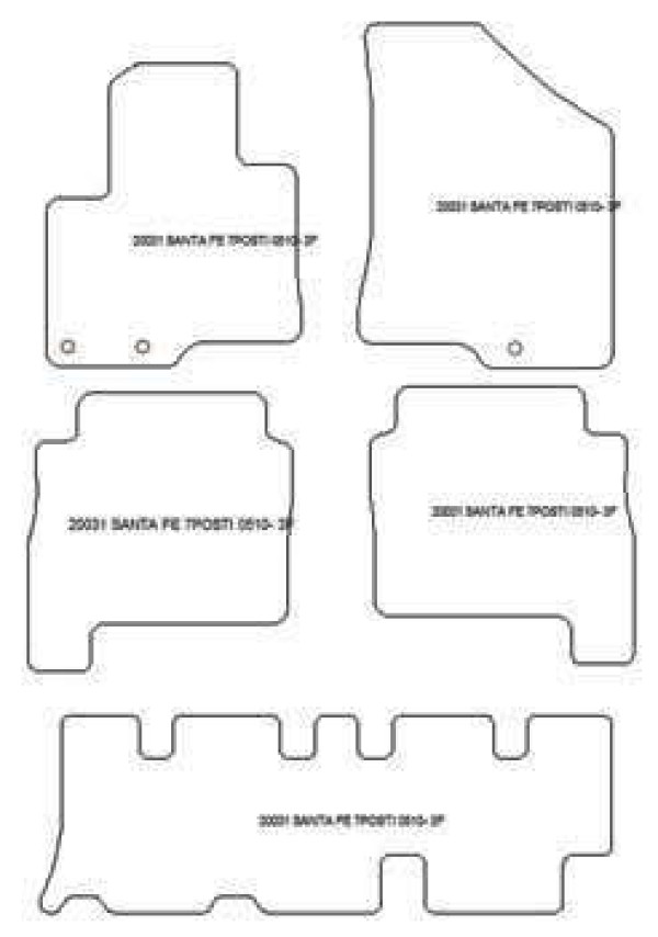 | Zusammensetzung des Sets | 2 Fussmatten vorn, 2 Fussmatten I Sitzreihe und 1 Fussmatte II Sitzreihe |