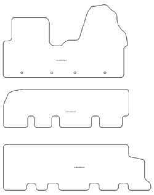 Zusammensetzung des Sets 1 Fussmatte vorn, 1 Fussmatte I Sitzreihe 1 Fussmatte II Sitzreihe